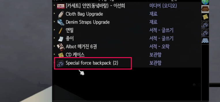집을 파밍하던 중 기다리던 백팩 등장. OK