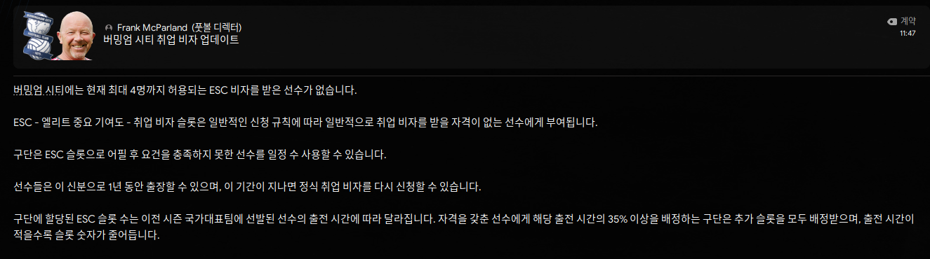 축구감독 없는 팀 감독하기에서 버밍엄 시티 낙점.