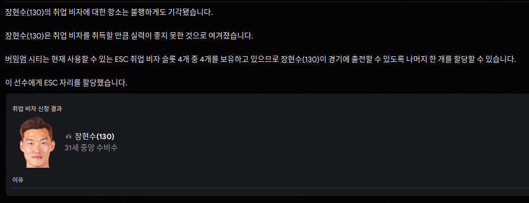 이의제기 항소에서도 기각당해서 ESC자리를 할당하여 영입.. 아하..이렇게 쓰는 거구나.