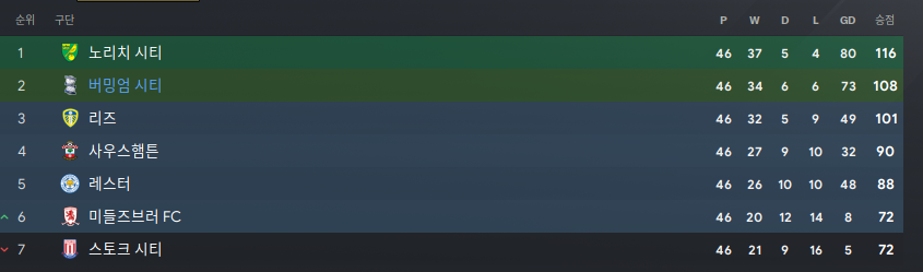 1위는 괴물팀 노리치 시티다. 매 경기 7-1로 이기고 있다. 미친건가? 게다가 다음 마지막 경기가 노리치 시티전... 과연?