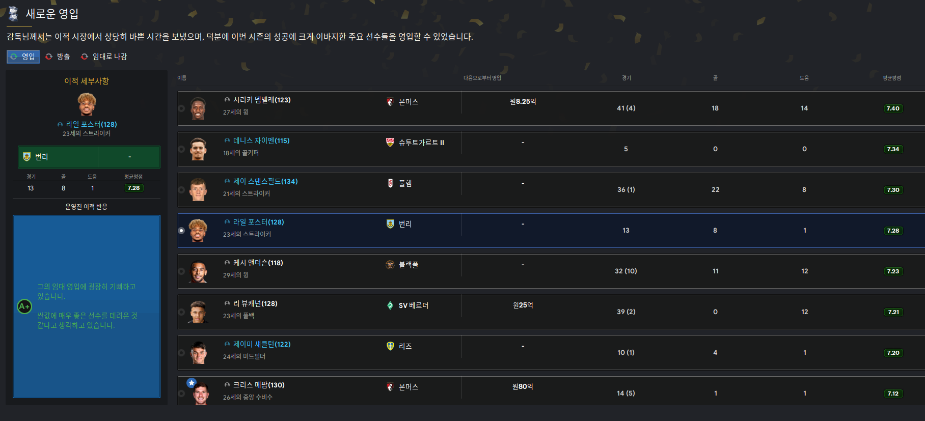 | [FM] 축구감독 생존기 S2 - 버밍엄 시티 2025/26 (2) | 2023.12.03 |