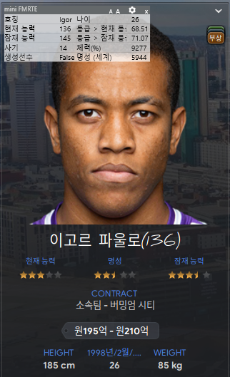 거의 대부분 정상 몸값으로 데려왔는데 이선수는 버그로 데려온 선수다. 하지만 브라이튼에서 주전감도 아니었기 때문에 데려온 것도 있다.