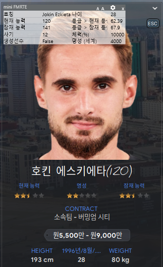 S1에서 후보 풀백으로 사용하던 선수다. 이번에도 후보 풀백으로 딱인 선수. 불만만 뜨지마라.
