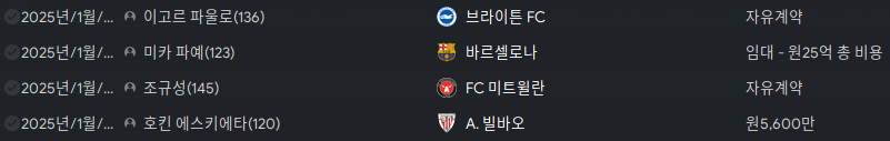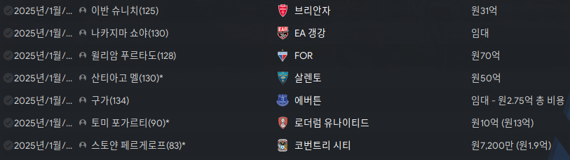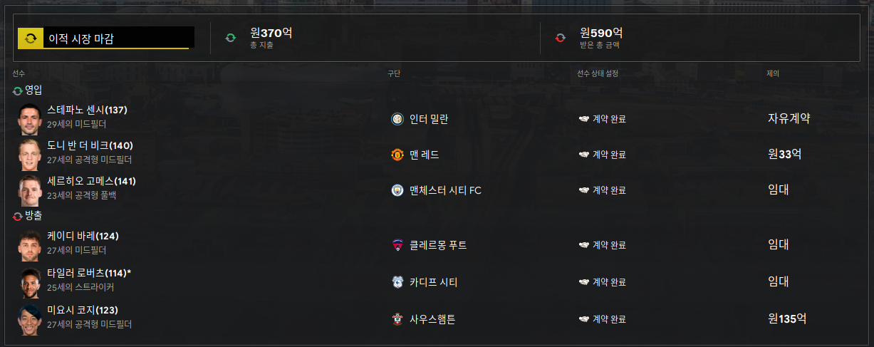 겨울이적은 여름이적 때 자유계약으로 영입했던 선수들을 돈으로 만드는 과정이 아니었나 싶다.