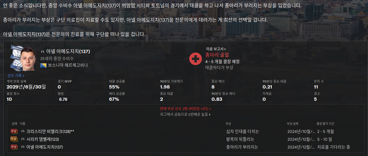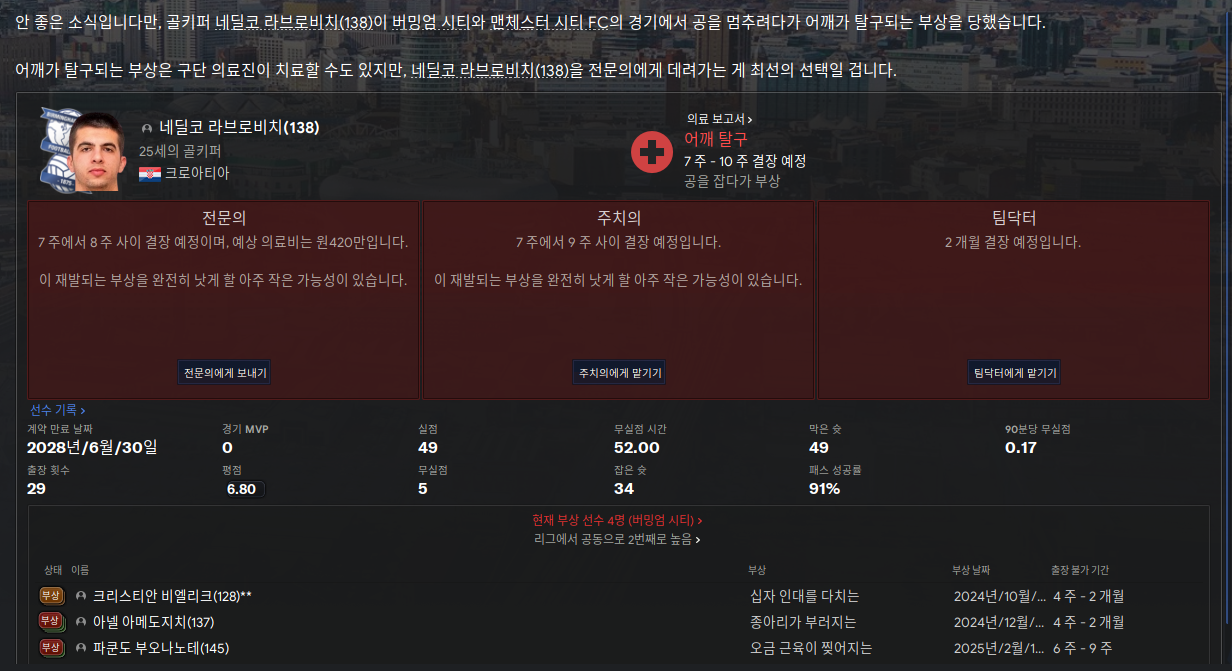 멜 골키퍼 역시 주전으로 뛰지 못하니 불만 떠서 어쩔 수 없이 내보냈는데 선수단이 골키퍼가 너무 약하다고 후보라도 뽑아달라고 해서 뽑았는데 과연 불만이 잠재워질 수 있을지 보자.