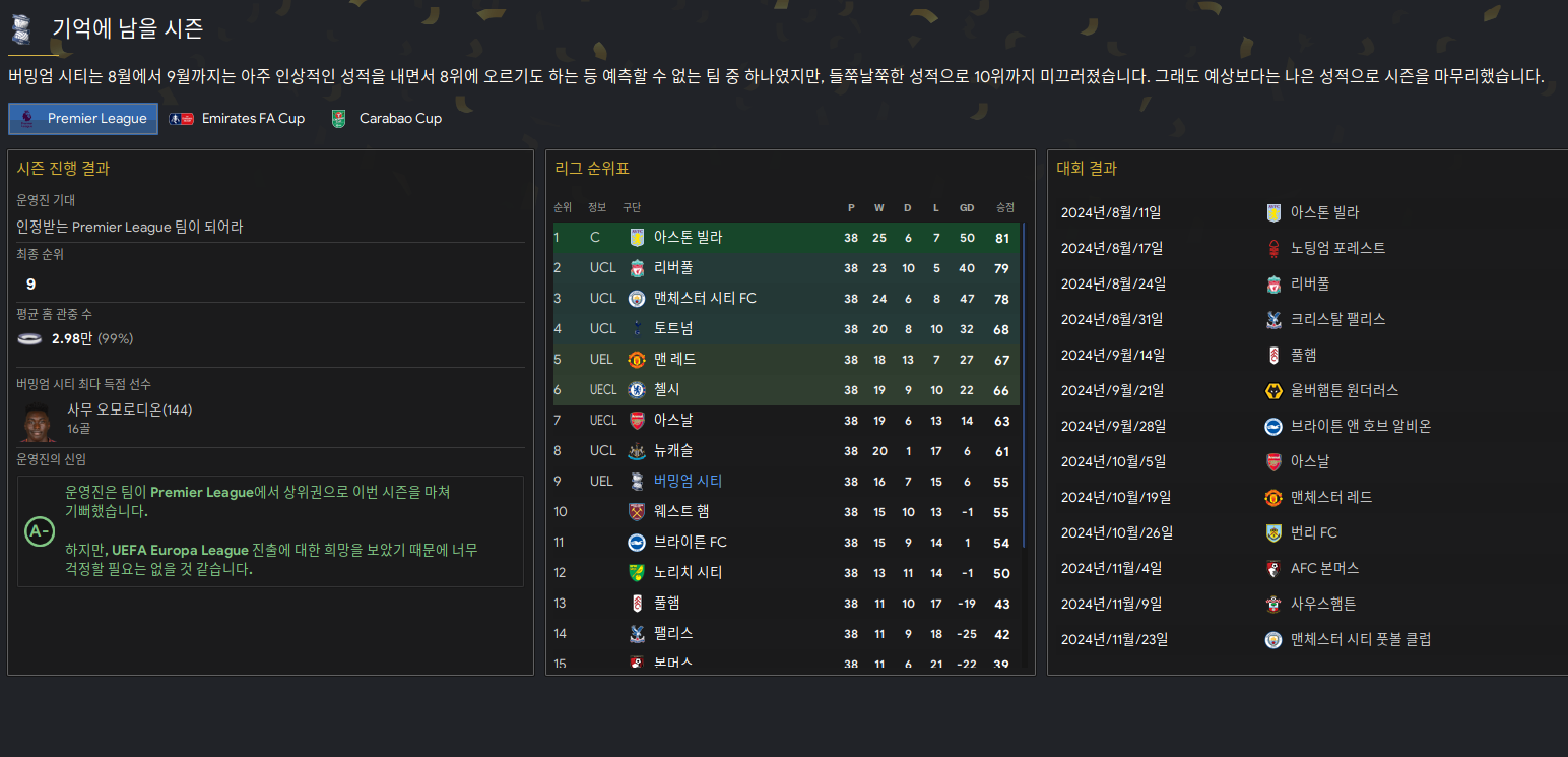 [FM] 축구감독 생존기 S2 - 버밍엄 시티 2023/24