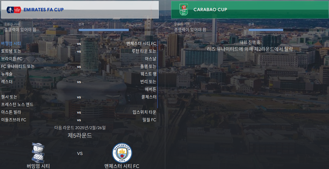 | [FM] 축구감독 생존기 S2 - 버밍엄 시티 2025/26 (2) | 2023.12.03 |