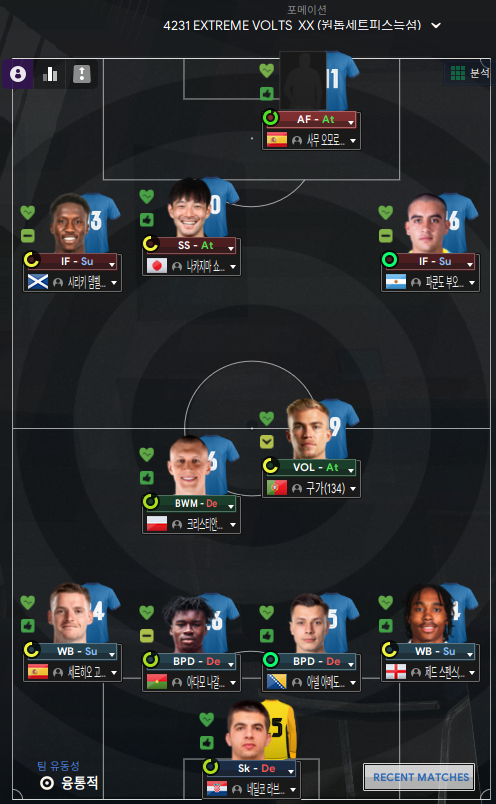 여름이적 소개에 앞서 리그 3번째 경기인 리버풀 출전 선수를 고르고 보니 이런 상황이다. 각 선수들의 국적이 다 다르다는 것.. 그래서 수코가 아넬 아메도~~의 능력치가 더 좋음에도 메팜(잉글랜드) 선수를 기용하는 이유인 것 같다.