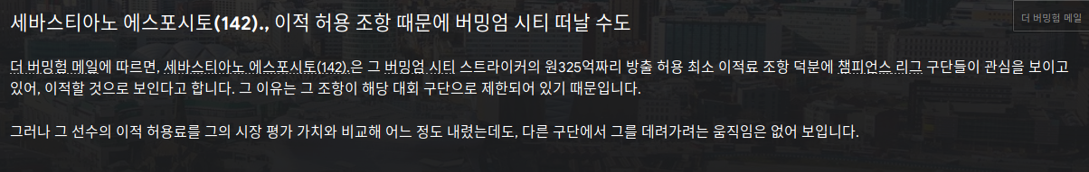 축구감독 없는 팀 감독하기에서 버밍엄 시티 낙점. 아.. 웨인 루니 짤렸구나.... 취업비자에 대한 새로운 규칙!! 이의제기 항소에서도 기각당해서 ESC자리를 할당하여 영입.. 아하..이렇게 쓰는 거