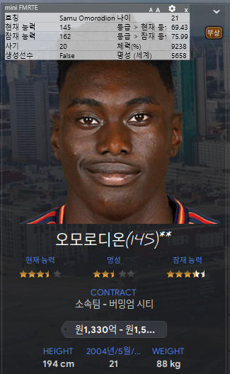 수비가 약하다고 팬들이 말해주길래 이적 마지막 8시간 전에 찾아 버그로 데려온 선수다. 그래서 몸값이 저모양이다.