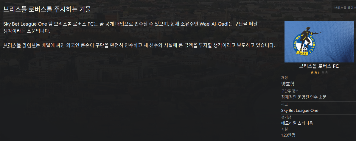 | 축구감독 생존기 S3 - 브리스톨 로버스 FC 2024/25 (1) | 2023.12.10 |