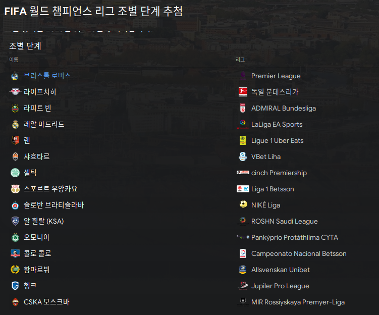 - 전세계 각 리그의 상위팀이 격돌하는 피파 챔피언스 리그 추가