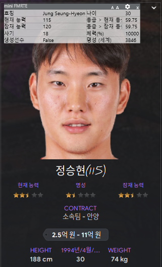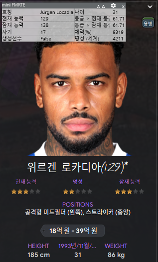 수비형 미드필더도 부상으로 너무 약해져서 데려왔다. 능력치가 준수하다.