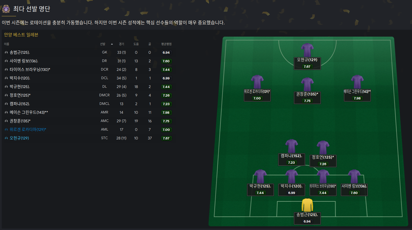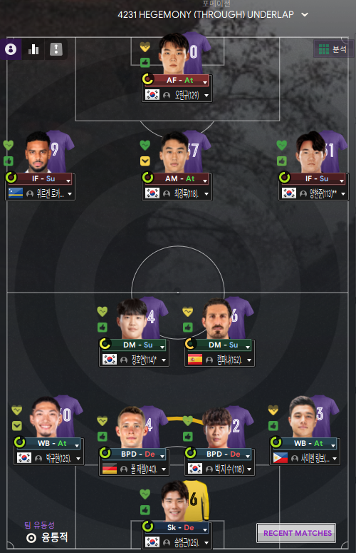 작년부터 쓰고 있던 전술로 직전 스쿼드다.