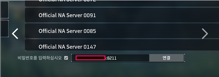 연결 버튼을 누르면 비밀번호 입력화면이 표시되고 비번을 정확하게 입력하면 최초 캐릭터 생성화면이 표시된다.