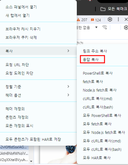 저 주소를 구하는 방법은 크롬이나 엣지의 개발자 도구를 이용한다.