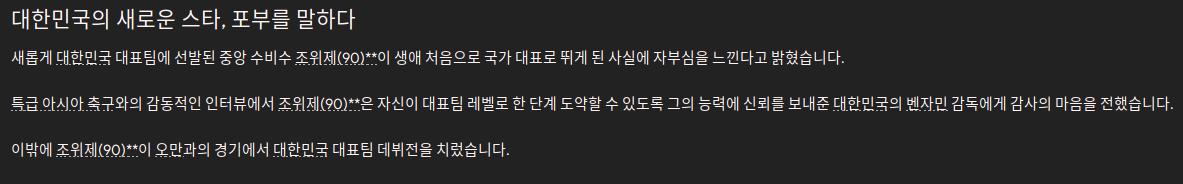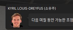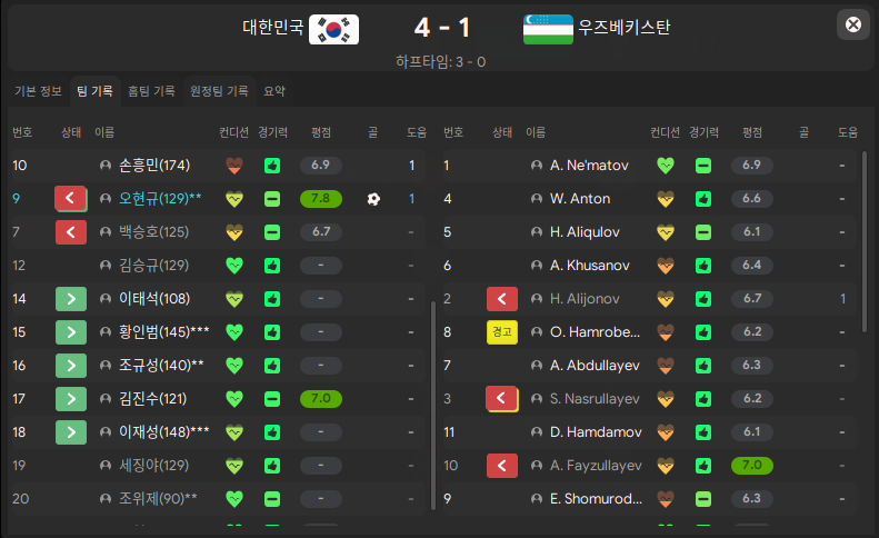 조위제.. 김천 상무 임대중인 선수인데 수비수 치고 잠능이 140대가 넘어가는 친구다. 그래서 넣어봤다.