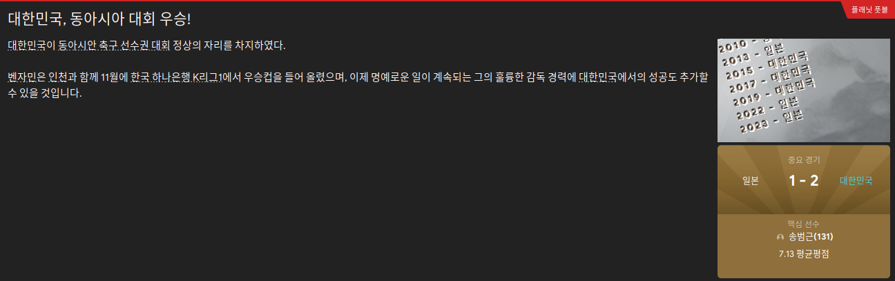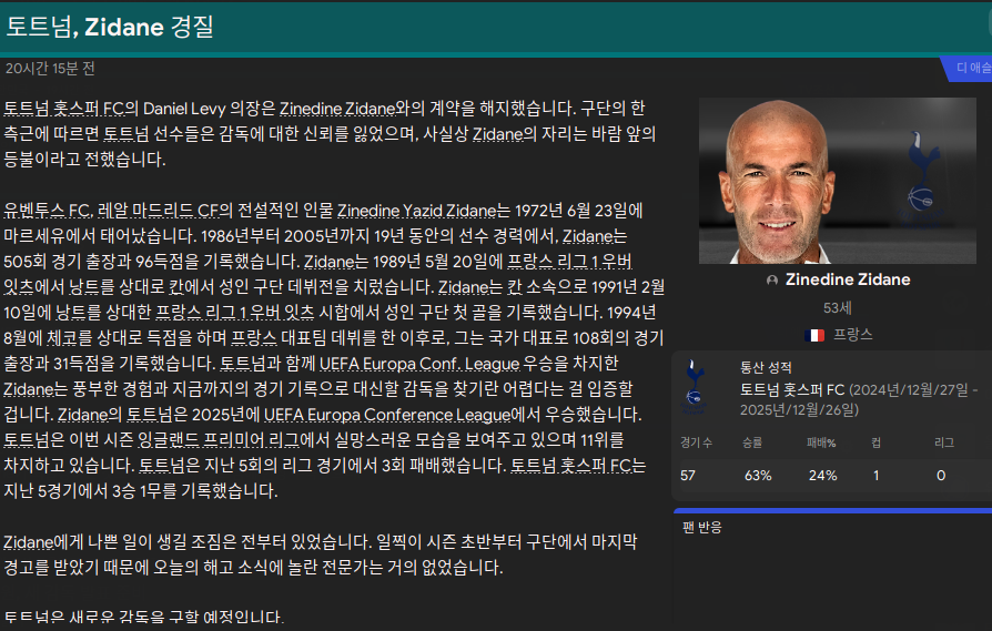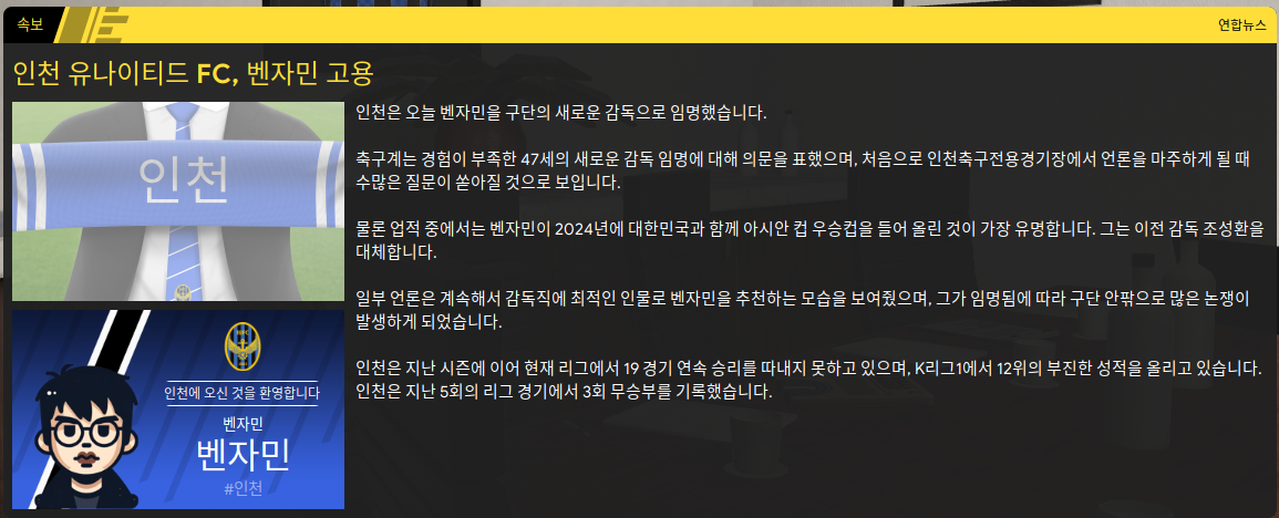 | 축구감독 생존기 S4 - 안양FC 26 > 토트넘 25/26 (0) | 2024.01.14 |