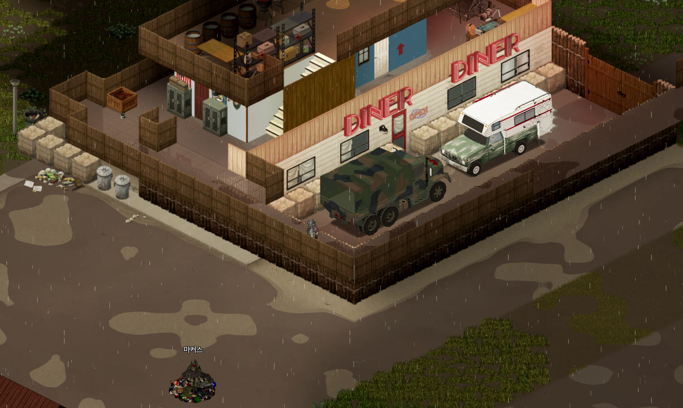 60트럭 화물칸만 커보였지 160정도 밖에 되지 않아 파밍을 제대로 할 수는 없었기 때문이다. 캠핑카 내부를 뜯고 나무상자를 이용한 창고를 만들어 파밍한 아이템을 모조리 실어서 가져왔다.