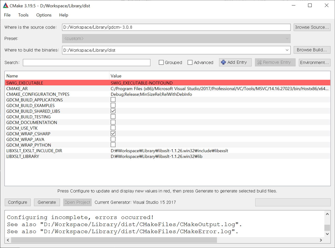 - SWIG_EXECUTABLE : {SWIG 압축 푼 경로}/swigwin-4.0.2/swig.exe