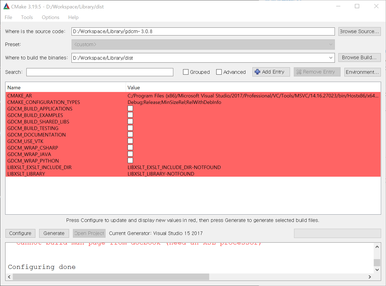 - GDCM_BUILD_SHARED_LIBS : 체크