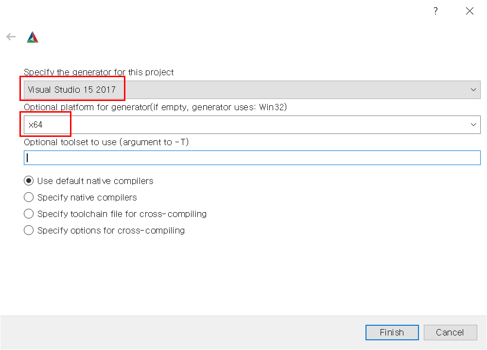 - Cmake 3.19.5 기준 VS2107까지 지원한다.