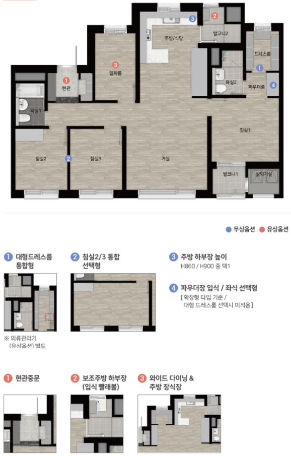 확장형은 베란다 확장을 말하는 건데 기본 포함가격입니다. 이 역시 요즘 아파트들 보면 확장 비용이 별도로 내야 하죠.