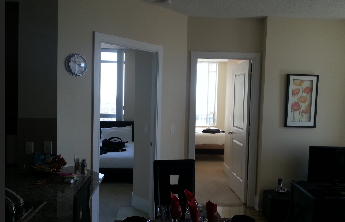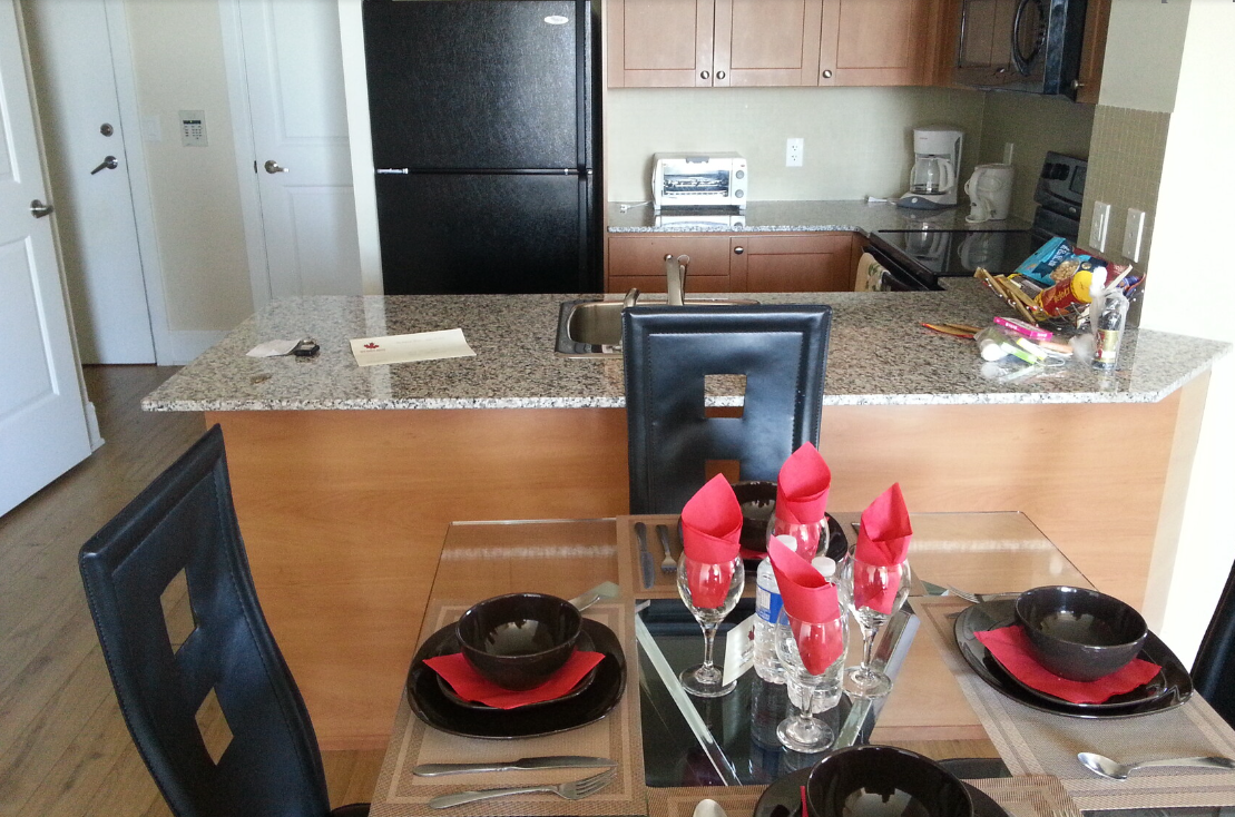 토론토 외곽의 아파트형 단기임대가 가능한 숙소에서 찍은 사진이다. 호텔은 비싸다고 여기를 구했다고 했다.