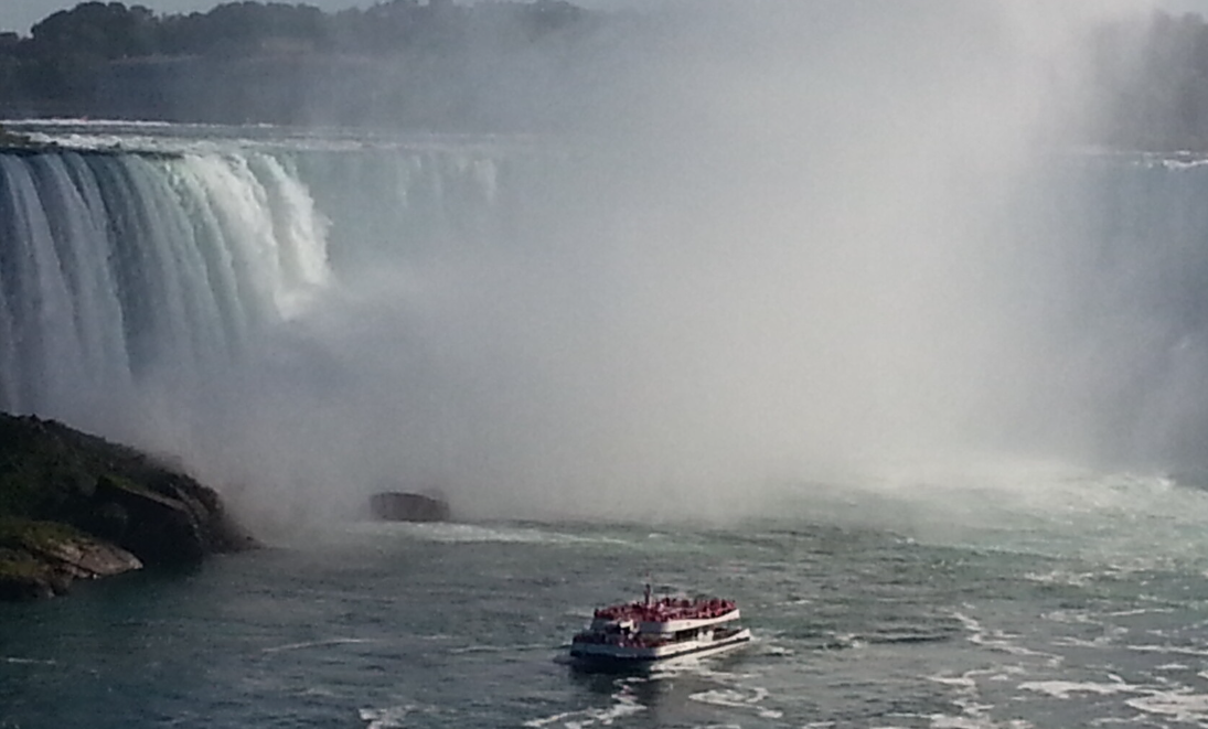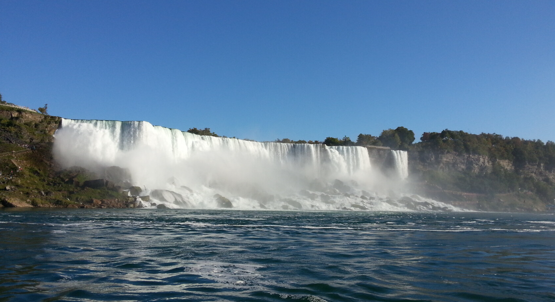 빨간 우비가 캐나다, 파란 우비가 미국, 뭐 지금은 바꼈다는데 그때는 배는 같은데 우비만 다르게 나눠줬다. 우비를 입어도 무조건 옷이 다 젖는다. 일부러 배가 저 안개 같은 곳을 들어간다. 물위에 거품 같아 보이는 저 하얀 것은 거품이 아니라 더러운 폐수 같았다. 두나라 합심해서 깨끗한 강을 만들었으면 하는 바램이다.