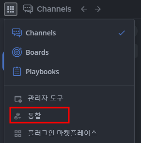 그리고나서 메타모스트 왼쪽 상단 아이콘을 클릭하면 나오는 메뉴에서 통합을 클릭합니다.