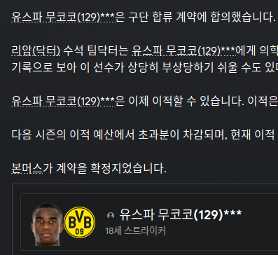 아르다, 던칸, 티는 가상선수로 잠능이 170이 넘는 선수들이다. 미래를 보고 영입한 선수들이다. 75억 불렀는데 그대로 승락을 해서 어쩔 수 없이 그 가격에 영입했다.(도날드 덕에 돈이 남아돈다.) 시즌이 끝나고 카마라는 수미로 보고 영입했는데 수비수 였다. 둘다 가능. 개이득. 라퐁은 골키퍼인데 아직 네투보다 약하지만 160이상의 잠능을 가지고 있어서 데려왔다. 둘다 중요선수 이상인데 시즌도중 불만 뜰 것 같아 불길하긴 하다.