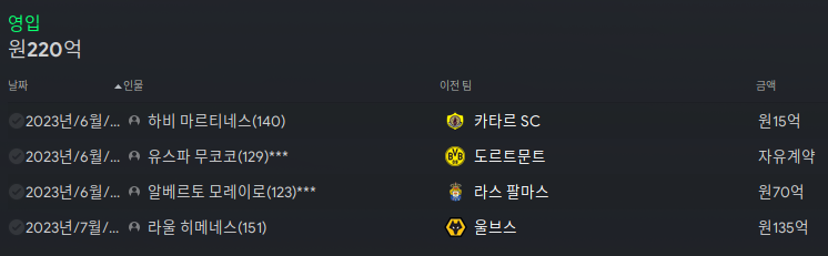 23/07/18 현재까지 영입/방출 기록을 살펴보자.