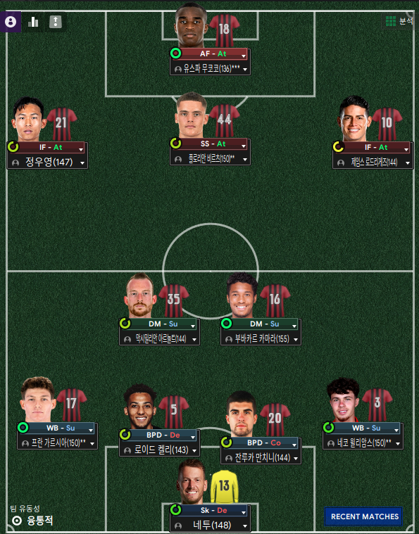 이전 아약스와의 경기 때문에 주전 일부선수들을 기용하지 못한게 아쉬웠다.