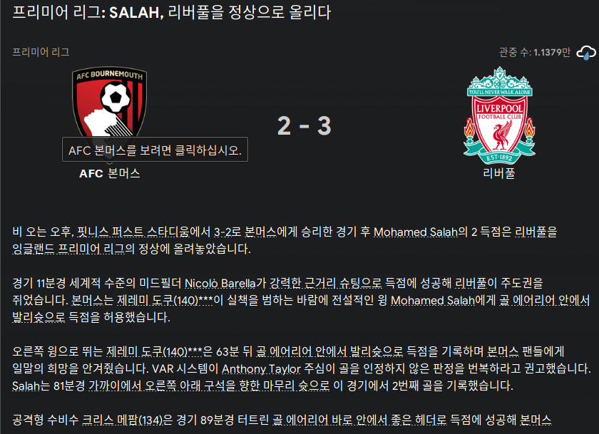 방금 리버풀과의 리그전은 직접 관전했음에도 3:2로 역투끝에 패했다. 경기력은 좋았는데 참 아쉽다.