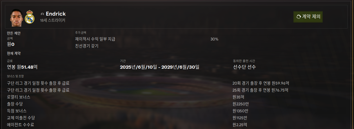 5. 엔드릭: 현실 레알 마드리드 특급 유망주다. 레알에서 올줄은 몰랐다. 영입버그 5번째 선수