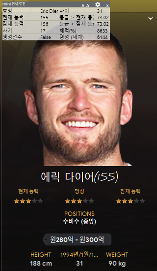 9. 에릭 다이어: 토트넘에서 방출 떴길래 싸게 영입했지만, 나이가 많다. 우리팀에서 고령선수 31살