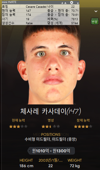 7. 체라세 카사데이: 이전 시즌 임대로 데려왔던 선수를 그대로 영입했다. 내돈내산