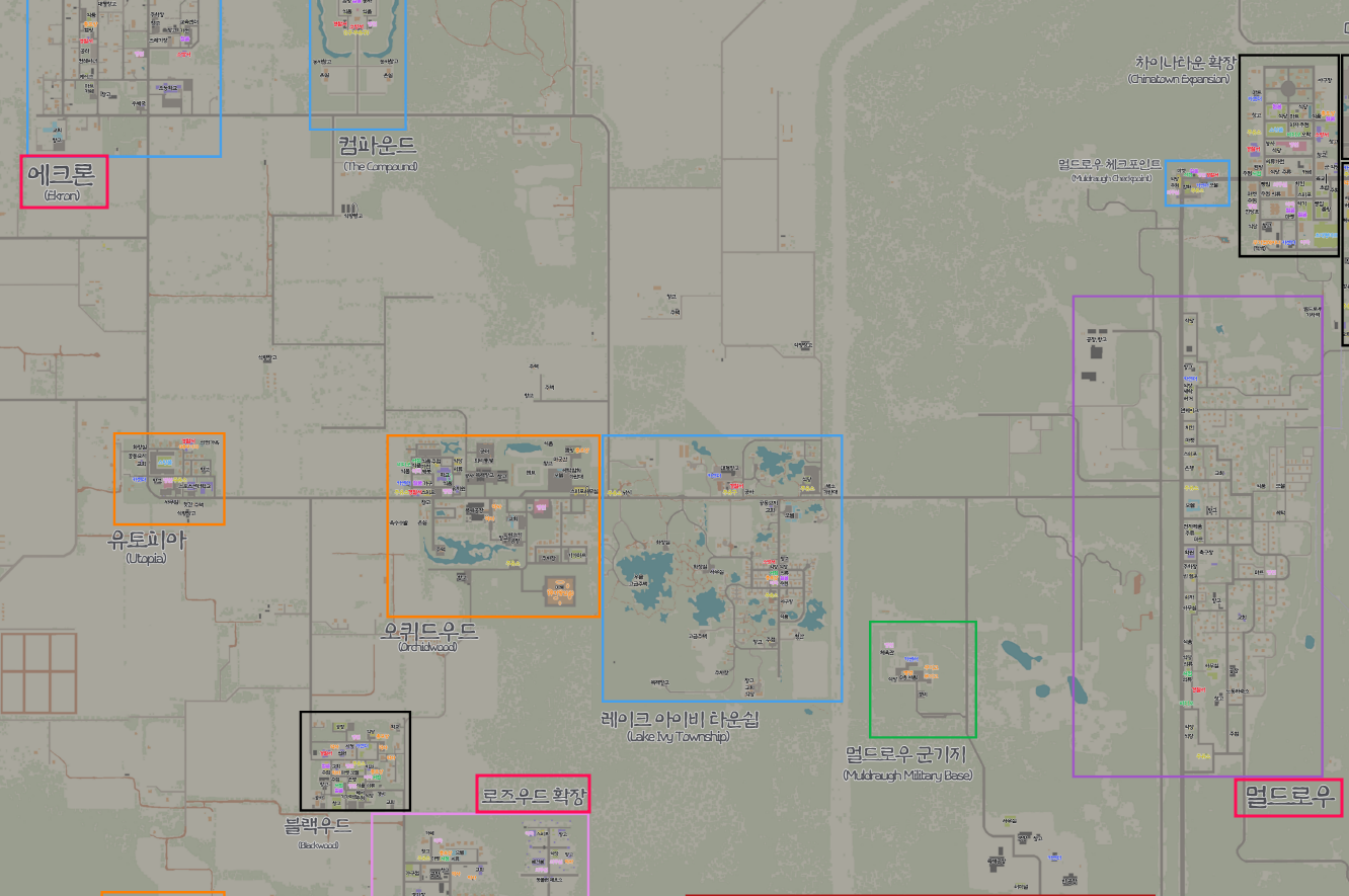 위 지도에서 우측의 "멀드로우" 만 바닐라 맵입니다.