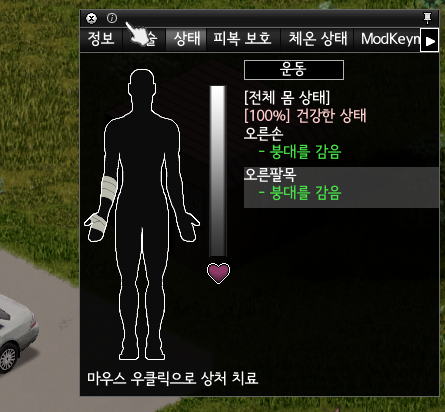 좀비들에게 둘러쌓여 물리고 말았다. 100% 건강한 상태이니 감염은 안걸린 걸까?
