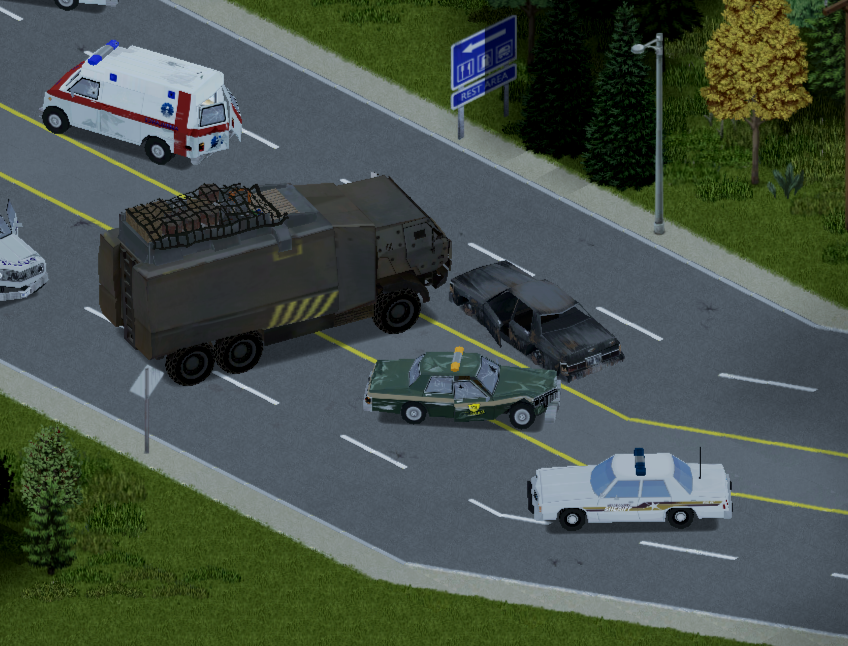 떠나기도 전에 장갑차 발견. 타러 갈려다가 갑자기 뛰어오는 좀비때문에 식겁해서 표시만 해두고 떠난다.
