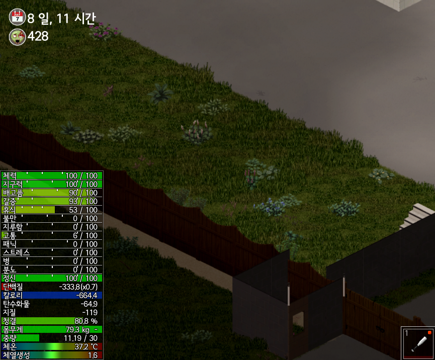오늘 한 100여마리를 죽인 것 같다. 거점 근처에 좀비가 없어서 여유로왔는데 아직도 이렇게 많은 좀비가 있었다뉘..