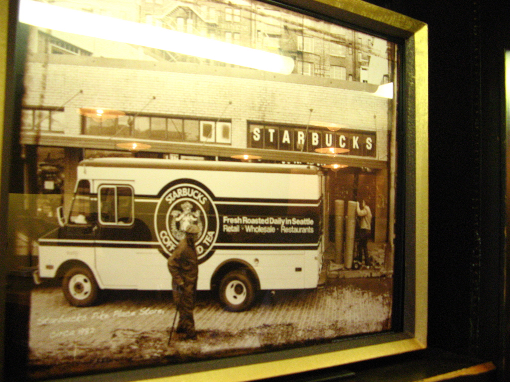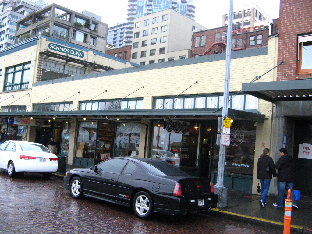 소나타가 보인다. 그 뒷차 옆 가게가 스타벅스 1호점이다. 그당시 그대로를 유지하고 있다.