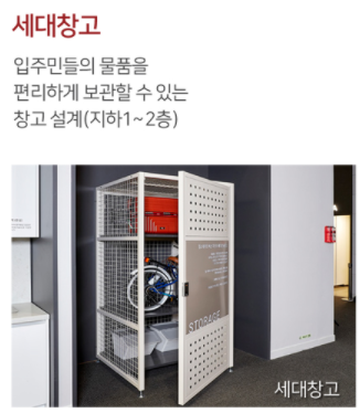 또 하나가 아래와 같은 세대창고가 있다는 건데 호불호가 갈릴 것 같아요. 이거 대신 주차장 확보가 더 되었으면 하는 바램이 있었습니다. 그래도 요긴하게 써먹겠죠(??)